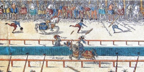 Es conocido que Enrique II de Francia murió como consecuencia de su participación en un torneo, en el que a pesar de que las lanzas eran de madera, tuvo la mala fortuna de que, al romperse la lanza de su oponente, una gran astilla se introdujera por el visor de su casco y se le clavara profundamente en su ojo. Ni los mejores médicos del reino pudieron salvar la vida del rey, aunque los días que duró su agonía se intentó de todo. Incluso se procedió a clavarle astillas similares a diez prisioneros para probar distintas formas de extraerlas y curar la herida. Ninguno de los desdichados prisioneros sobrevivió como tampoco lo hizo el rey francés.