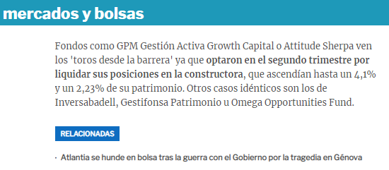 Fondos como GPM Gestión Activa Growth Capital o Attitude Sherpa ven los ‘toros desde la barrera’ ya que optaron en el segundo trimestre por liquidar sus posiciones en la constructora, que ascendían hasta un 4,1% y un 2,23% de su patrimonio. Otros casos idénticos son los de Inversabadell, Gestifonsa